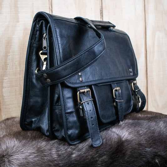 "The Adventurer" Leather Laptop Bag - Large (Black)