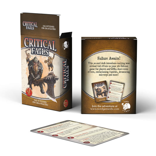 Enhance your 5E D&D games with Nord Games’ versatile card decks, designed to streamline gameplay and elevate your adventures. Spice up combat with our Critical Hit Decks, introducing thrilling new effects that make every battle unforgettable. Build engaging encounters effortlessly using our Wandering Monster Decks, perfect for crafting challenges on the fly. Add depth and danger to your dungeons with our Treacherous Traps Decks, filled with hazards to keep your players on their toes. With countless ways to enrich your campaigns, our card decks are the ultimate tools to make your adventures more dynamic, immersive, and exciting!