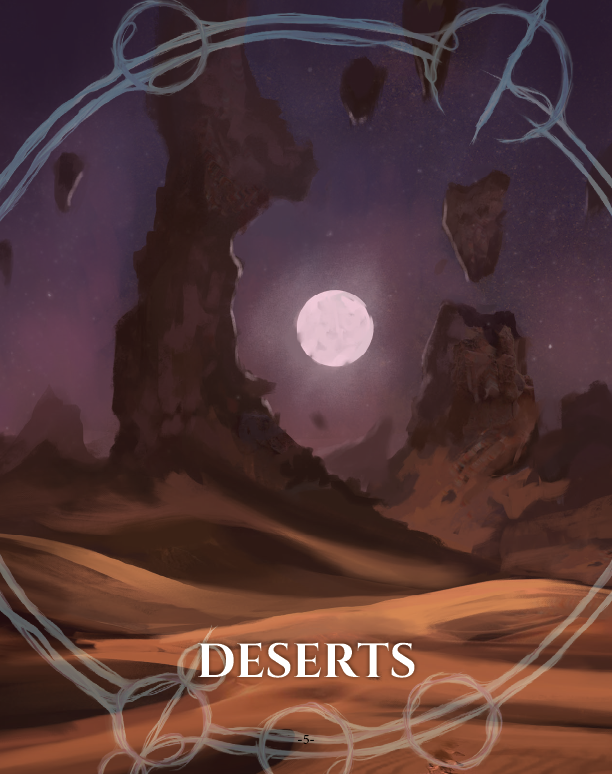 This PDF contains exploration, roleplay, and combat encounter cues, each for a different environment, for fantasy roleplaying games, writers, and storytellers.