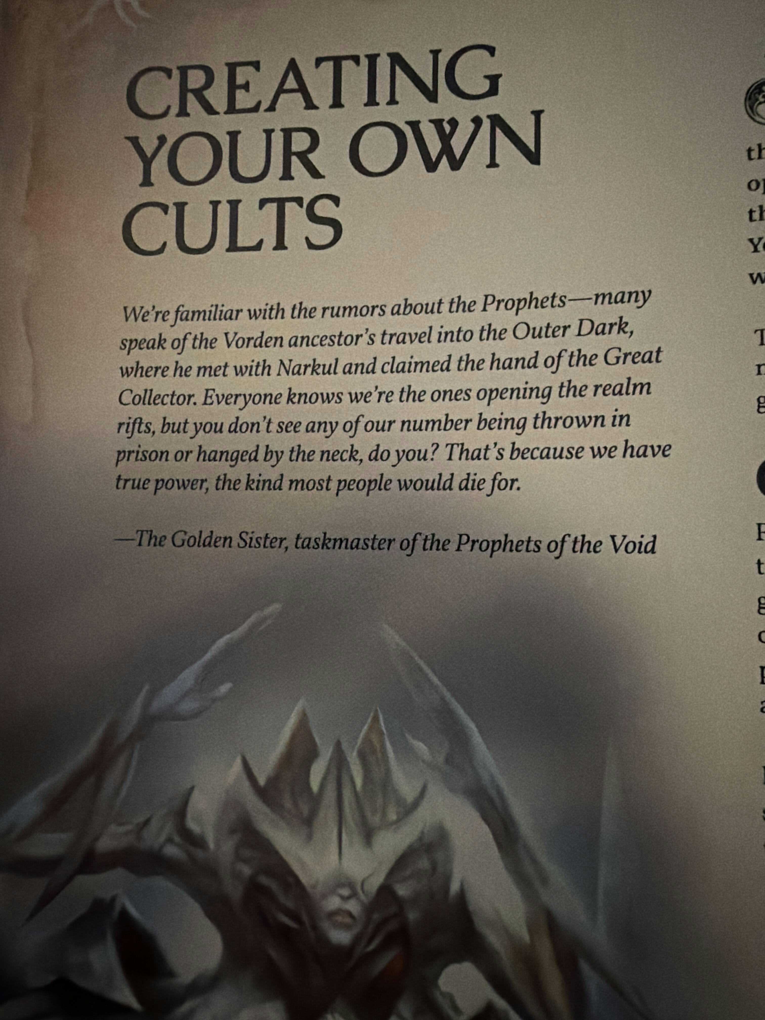 This book, this source guide has been exactly What I was looking for. I'm very excited to make cults in my tabletop world, before I was half-assing the process, this adds so much more!