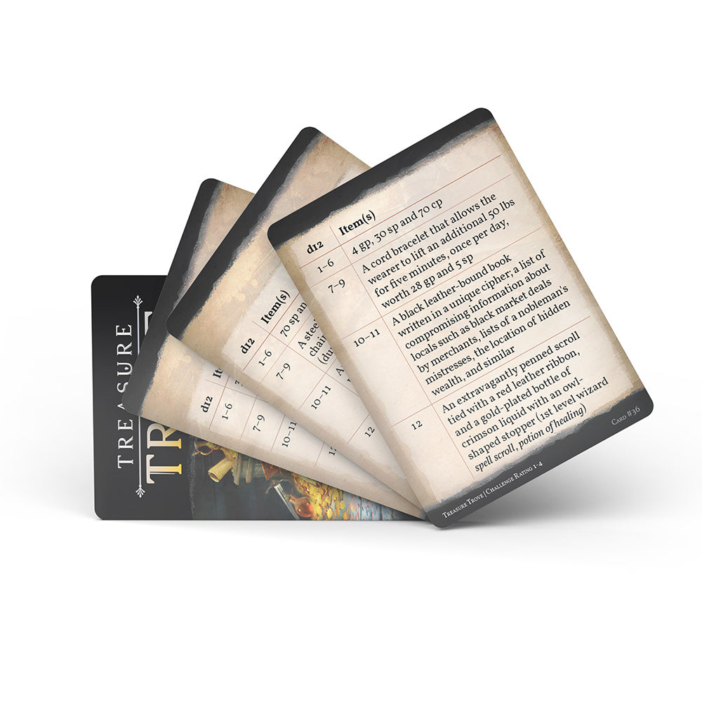 Nord Games NEVER disappoints! The D&D 5e Treasure Trove Deck is SWEET! The art is GORGEOUS! The card quality is outstanding and the print easy to read. The product seems to be imminently usable and a true benefit to any GM who gets their hands on it. 5⭐️!