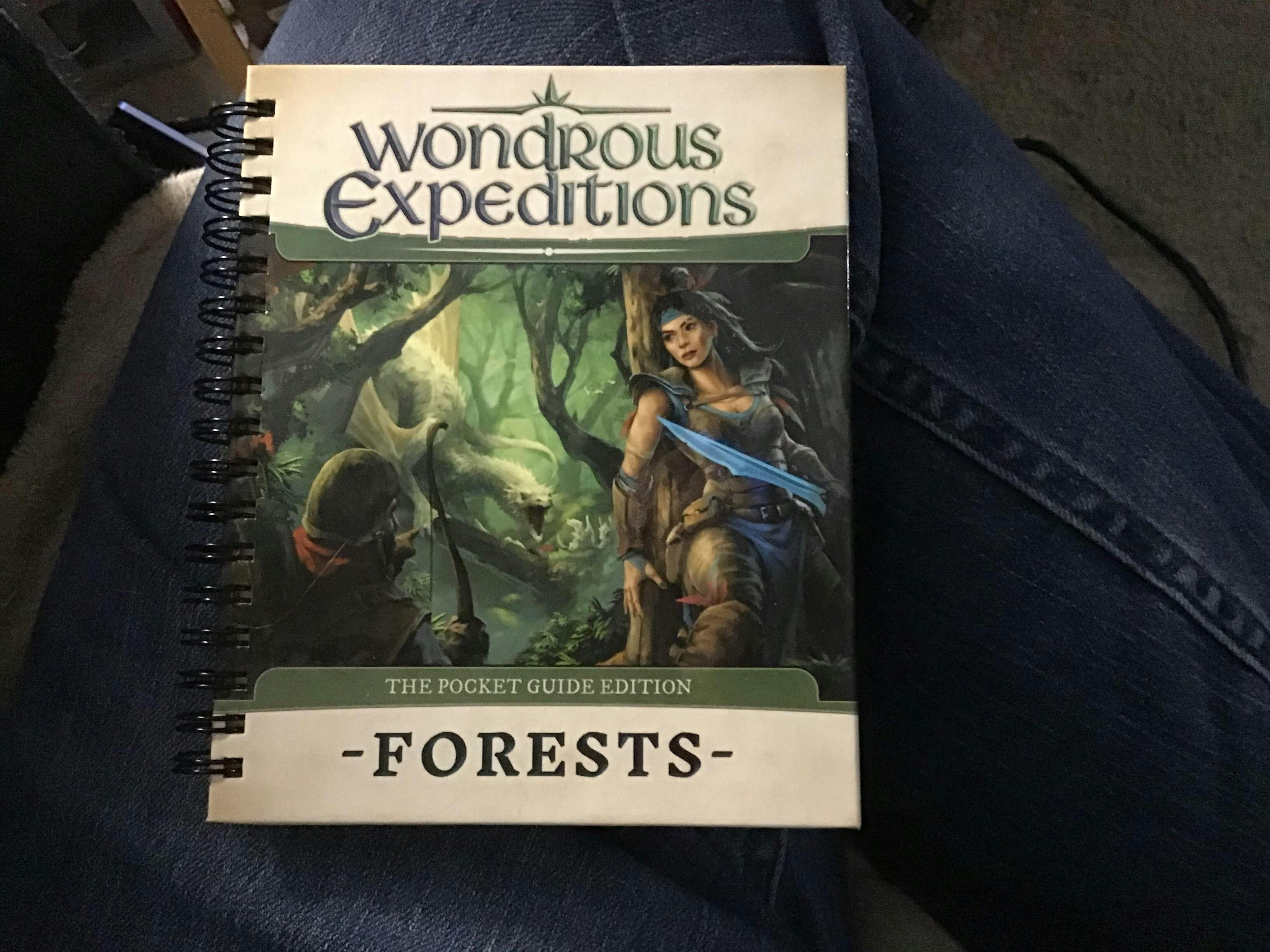 The Wondrous Expeditions Forests spiralbound pocket guide is a handy small book for roleplaying game masters that wish to make roleplaying forest travels more exciting. This pocket guide is designed as a complementary product to our full 148-page book and is a condensed version of that book. The pocket guide features the tables from the full book in an easily accessible way. The pocket guide is a durable hardcover product, with tabs to easily find what you need.