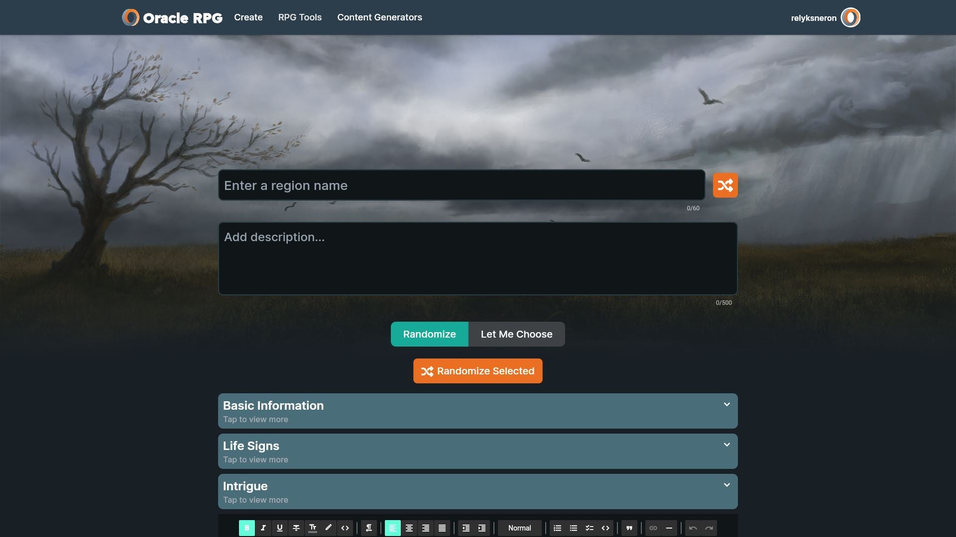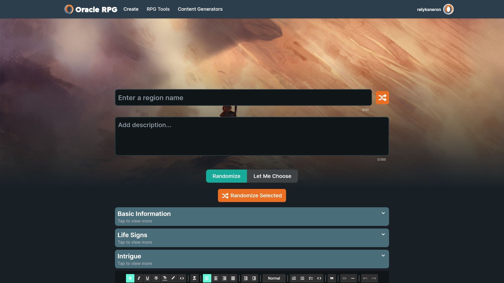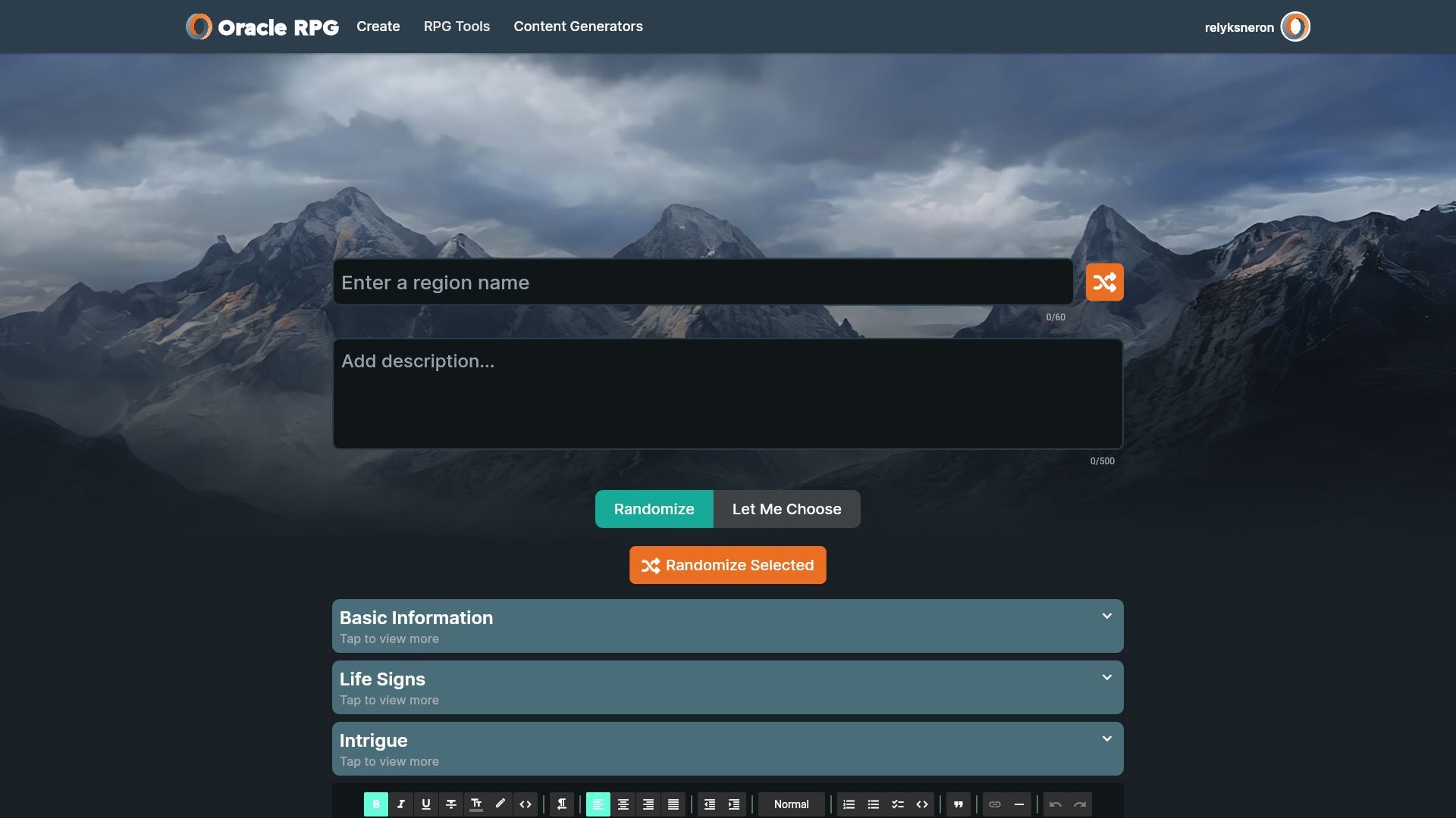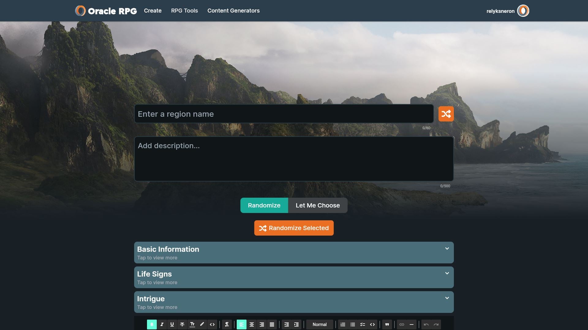 The World Generator Oracle RPG module empowers creators to generate custom worlds complete with unique landmarks, destinations, and immersive realms. This innovative tool streamlines world-building for game masters, authors, and designers seeking rapid, high-quality content generation. Leverage this Oracle RPG module to produce distinctive geographical features, cultural landmarks, and interconnected locations tailored to your creative vision. Whether developing tabletop campaigns, fiction settings, or game environments, this solution accelerates the design process while maintaining authenticity and depth. Essential for professionals demanding efficiency without compromising imaginative scope.
